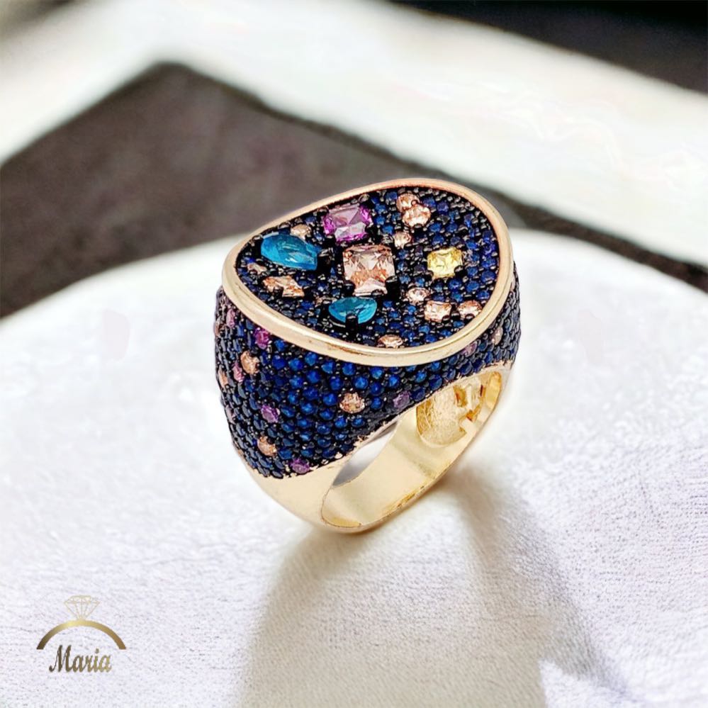 101306 خاتم طبق فصوص مايكرو و نانو و باجت الوان. متعددة الوان الطلاء