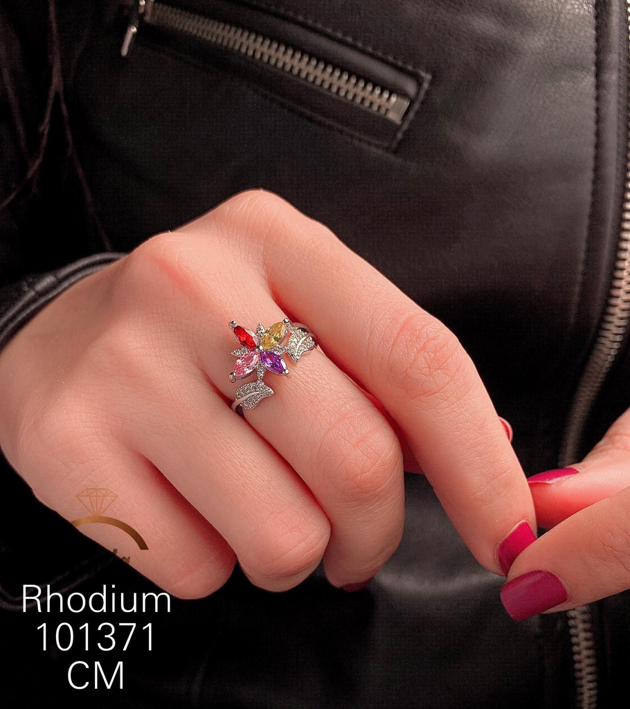 101371 خاتم سى ام وردة سلفر فصوص باجت الوان