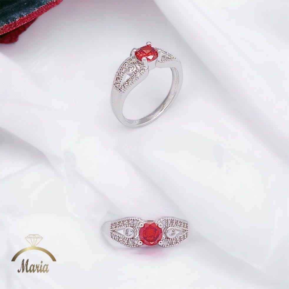 101398 خاتم سى ام سوليتير فص احمر سلفر فصوص مايكرو