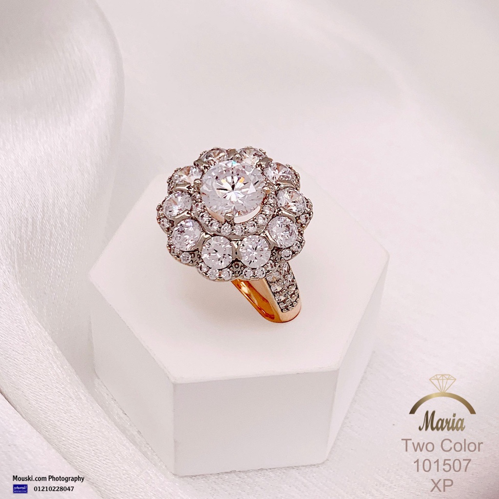 101507 خاتم اكس بى اتنين لون ورده فص سوليتير مايكرو زيركون
