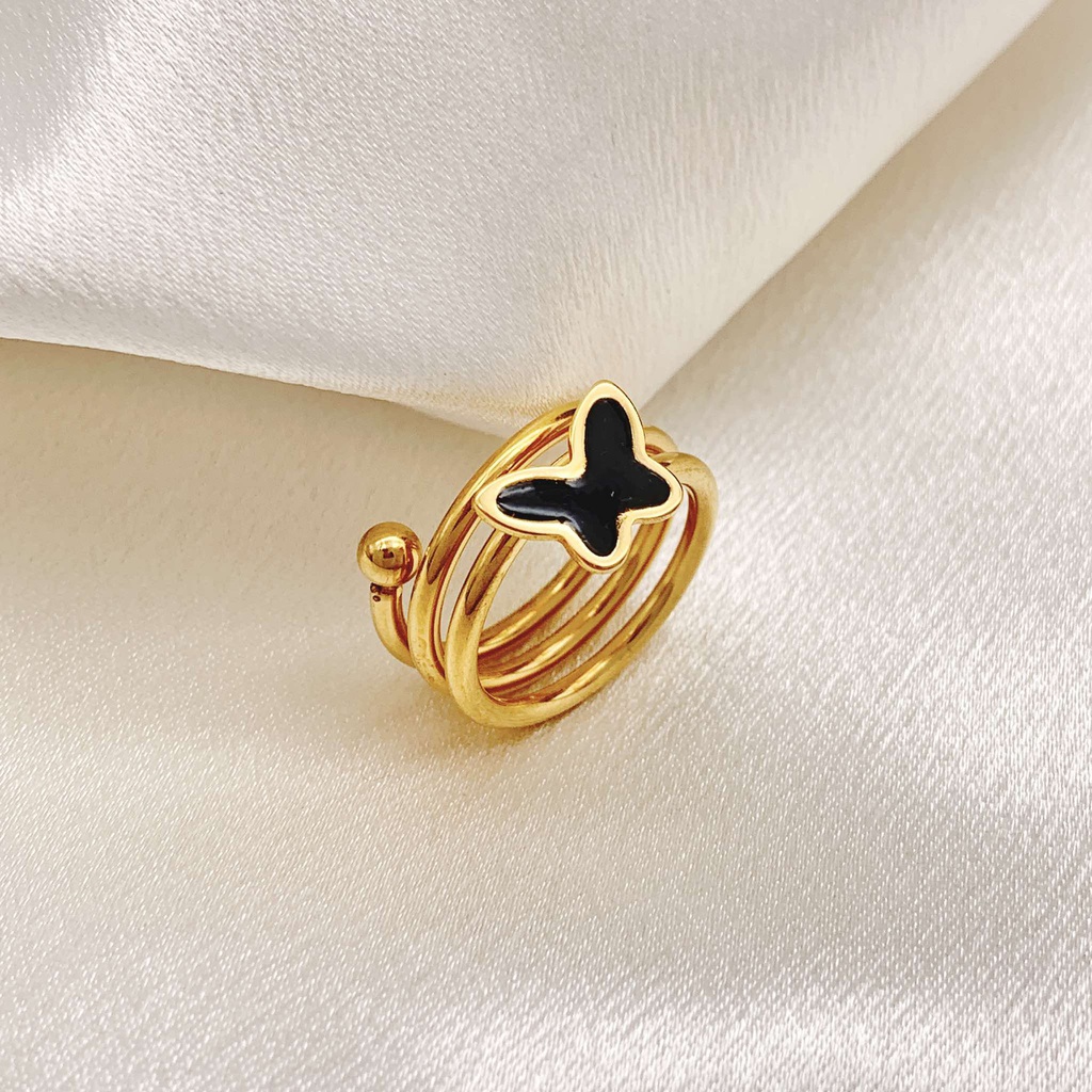 101659 خاتم جولد ستانلس عيار 304 فراشة مينا اسود