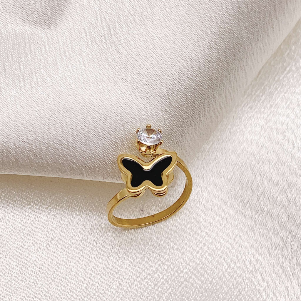 101664 خاتم جولد ستانلس عيار 304 فراشة مينا اسود