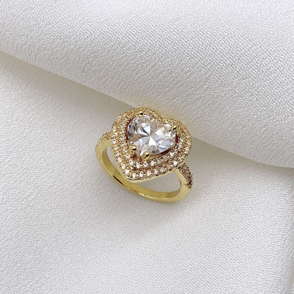 101726 خاتم جولد سوليتر قلب فصوص مايكرو زيركون فري سايز