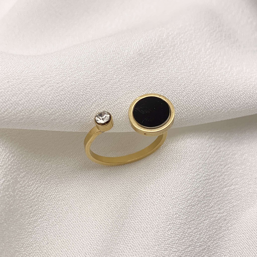 101773 خاتم جولد ستانلس عيار 304 مدور صدف اسود فص كريستال فري سايز