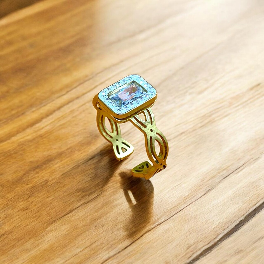 101787 خاتم جولد ستانلس عيار 304 مستطيل فص ابيض