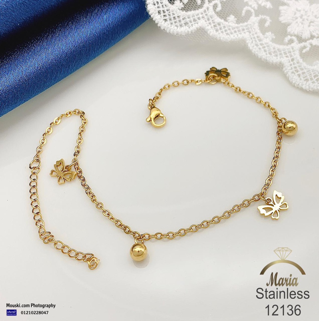 12136 خلخال ستانلس عيار 304  جولد حمصه وفراشات