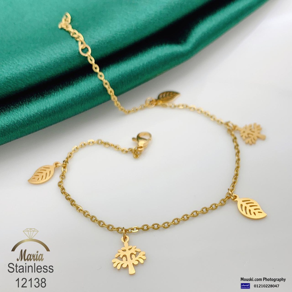 12138 خلخال ستانلس عيار 304 جولد ورق شجر