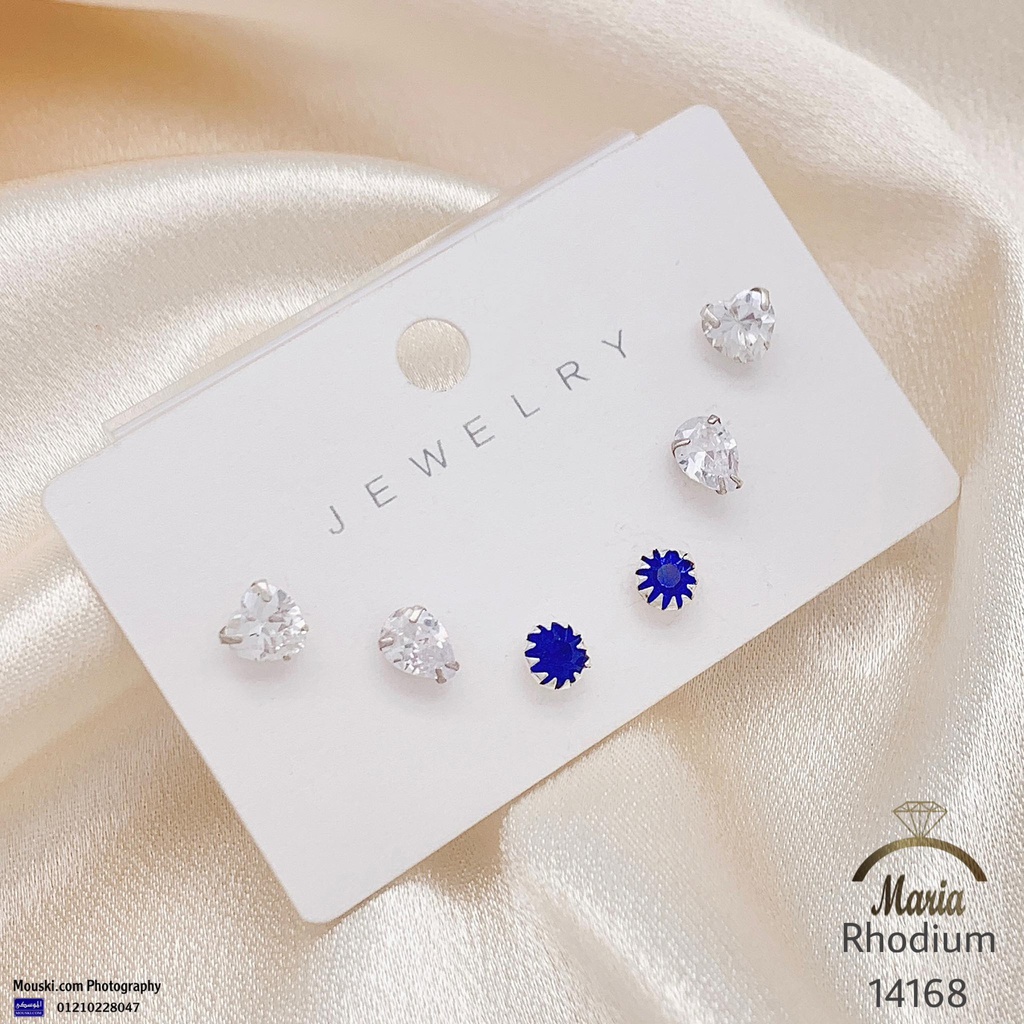 14168 كارت بيرسنج سلفر بريمه فصوص زيركون ازرق