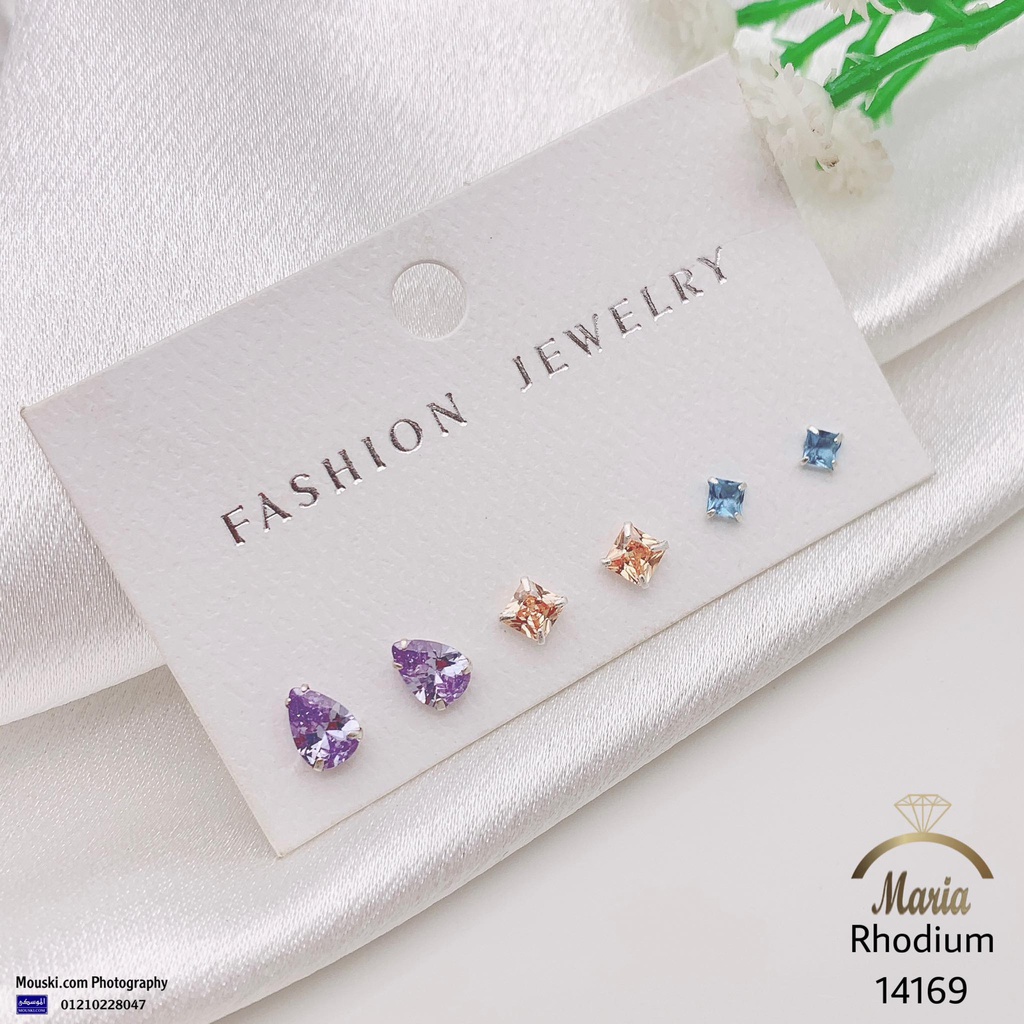 14169 كارت بيرسنج سلفر بريمه فصوص زيركون الوان
