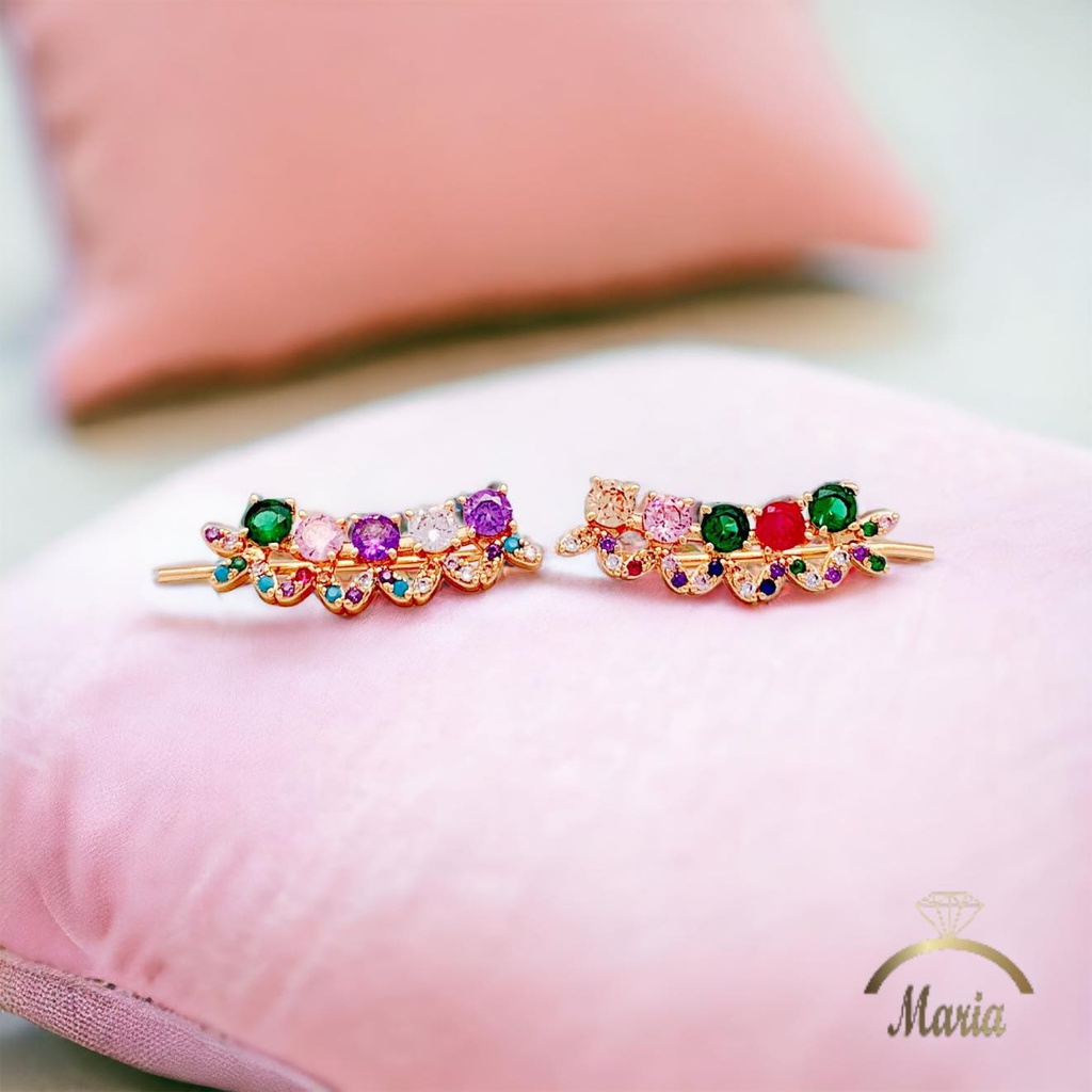 31437 حلق سى ام مشبك جولد فصوص زيركون الوان .
