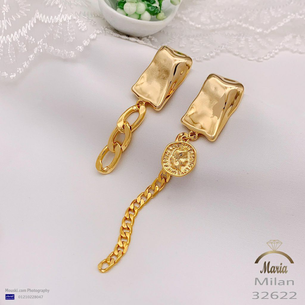 32622 حلق لوكس ماركة ميلان عمود فضه بريمه جولد مستطيل