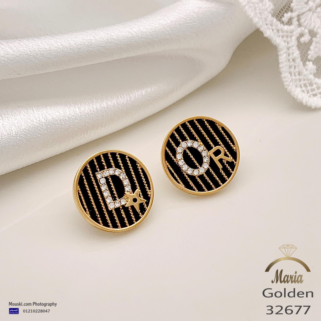 32677 حلق لوكس جولد ماركة ماريا عمود فضه بريمه اسود به حروف فصوص مايكرو