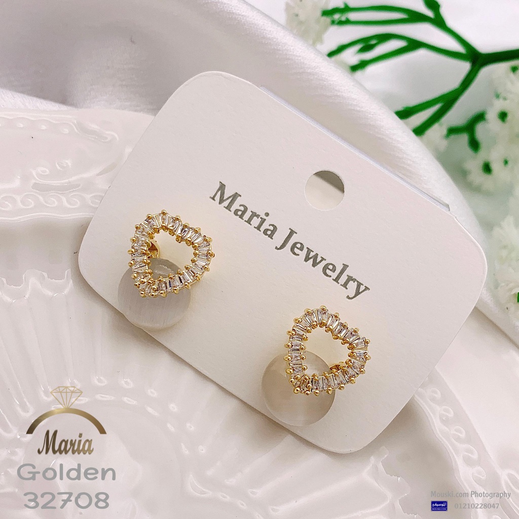 32708 حلق لوكس ماركة ماريا عمود فضه بريمه جولد قلب فصوص باجت حجر العقيق