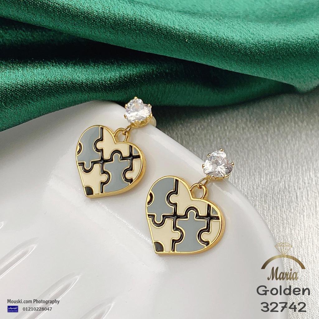 32742 حلق لوكس ماركة ماريا عمود فضه بريمه جولد قلب فصوص زيركون مينا ابيض