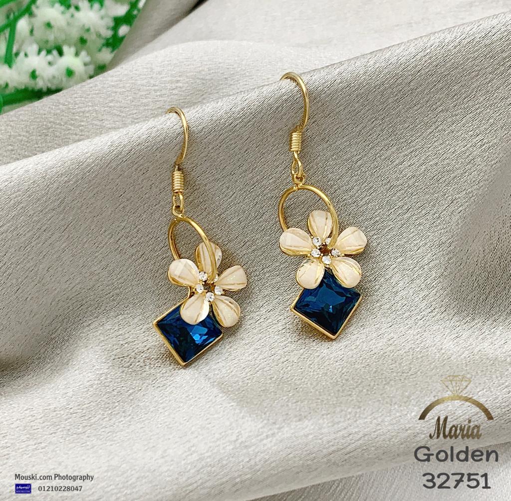 32751 حلق لوكس ماركة ماريا عمود فضه بريمه جولد ورده مينا ابيض فصوص مايكرو