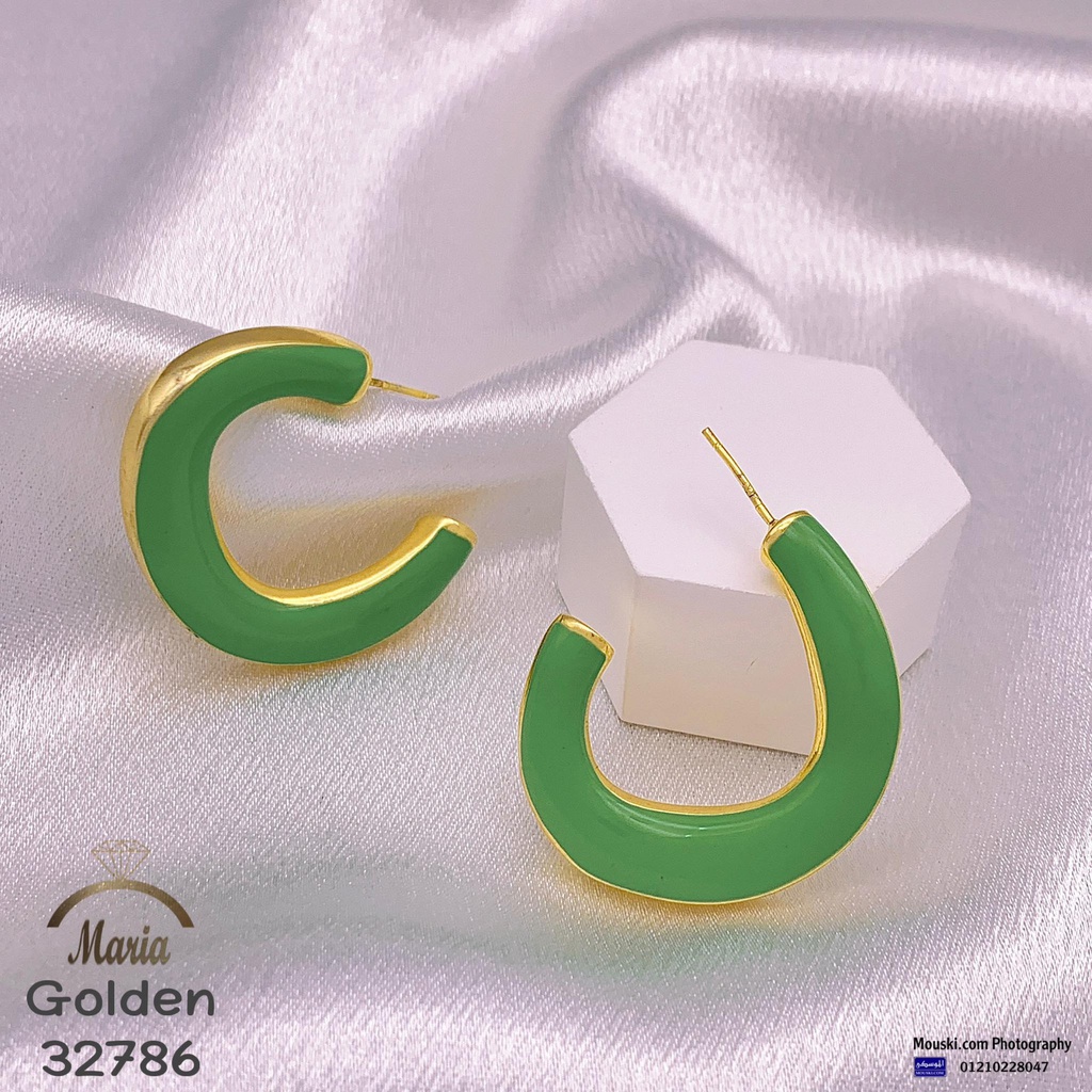 32786 حلق لوكس ماركة ماريا عمود فضه بريمه جولد مينا اخضر