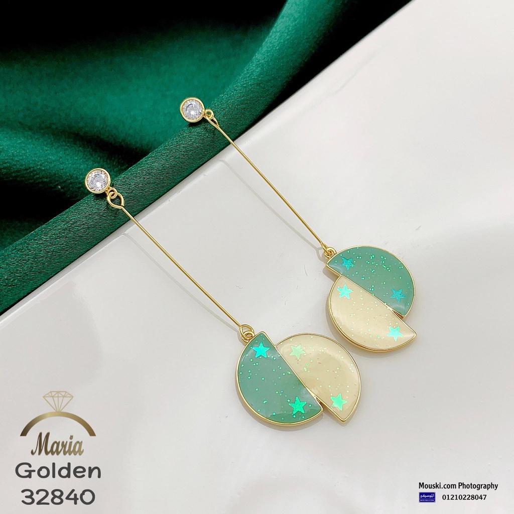 32840 حلق لوكس ماركة ماريا عمود فضه بريمه جولد نجوم فصوص زيركون