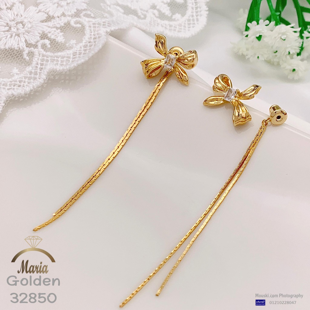 32881 حلق لوكس ماركة ماريا عمود فضه بريمه جولد لولى فصوص ماركزت