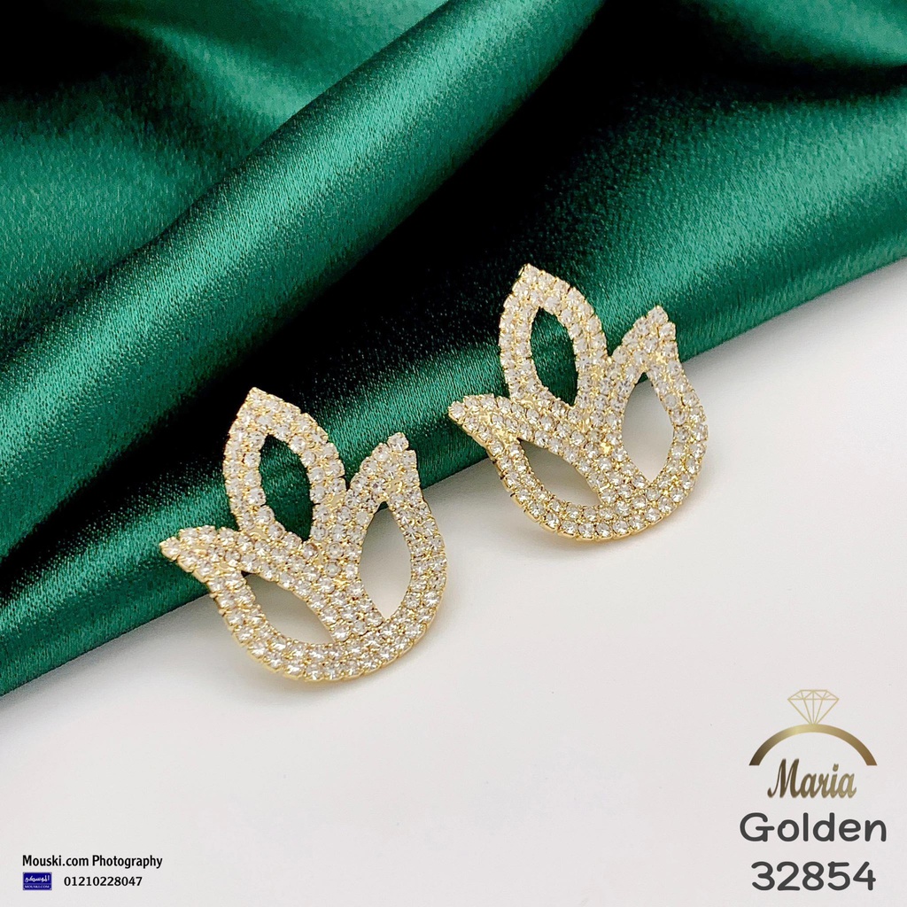 32854 حلق لوكس ماركة ماريا عمود فضه بريمه جولد ورده فصوص مايكرو زيركون