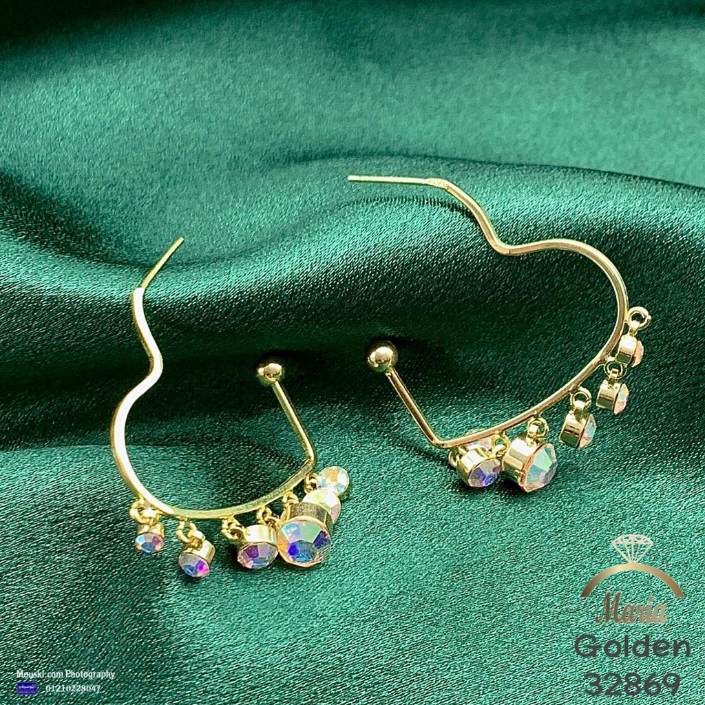 32869 حلق لوكس ماركة ماريا عمود فضه بريمه جولد قلب فصوص زيركون