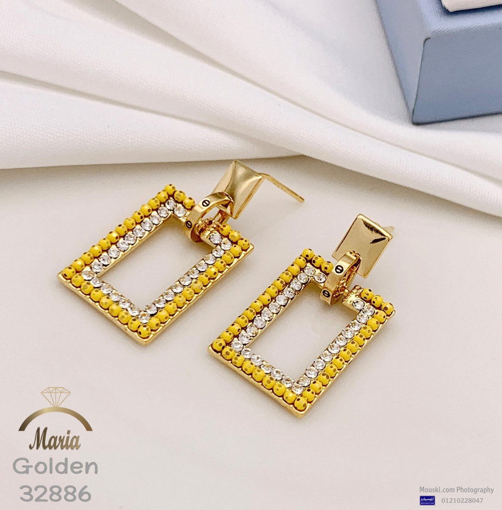 32886 حلق لوكس ماركة ماريا عمود فضه بريمه جولد فصوص مايكرو زيركون