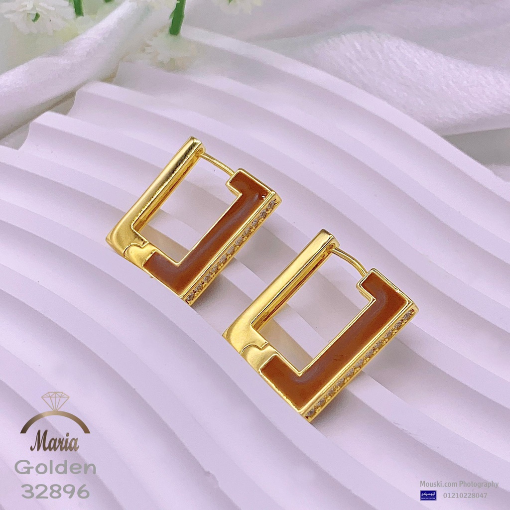 32896 حلق لوكس ماركة ماريا عمود فضه تكه جولد مينا احمر فصوص مايكرو زيركون