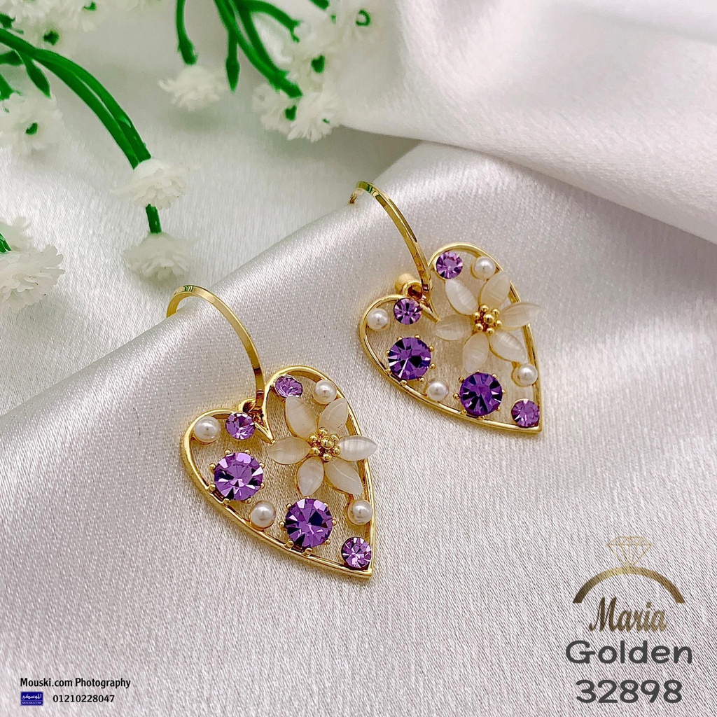 32898 حلق لوكس ماركة ماريا عمود فضه بريمه جولد قلب ورده لولى فصوص زيركون