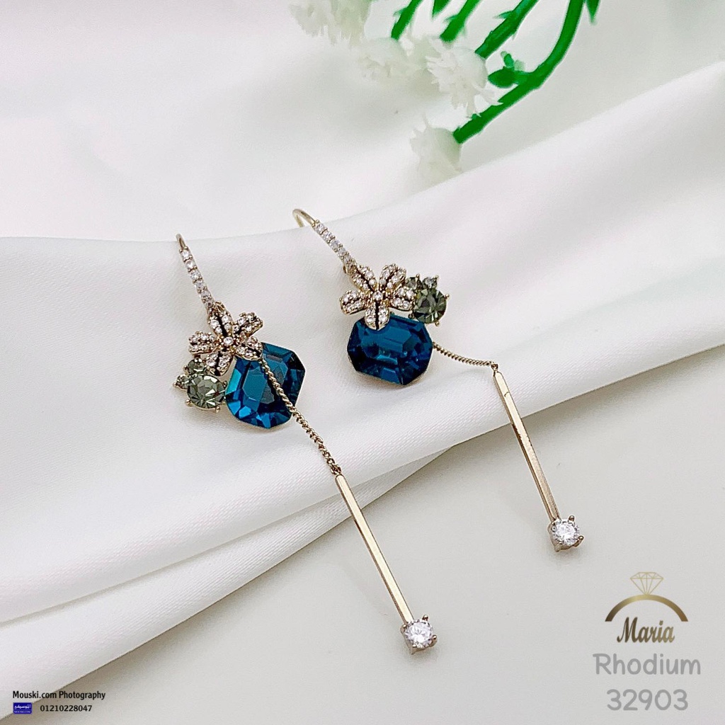 32903 حلق لوكس ماركة ماريا عمود فضه بريمه سلفر ورده فصوص مايكرو زيركون
