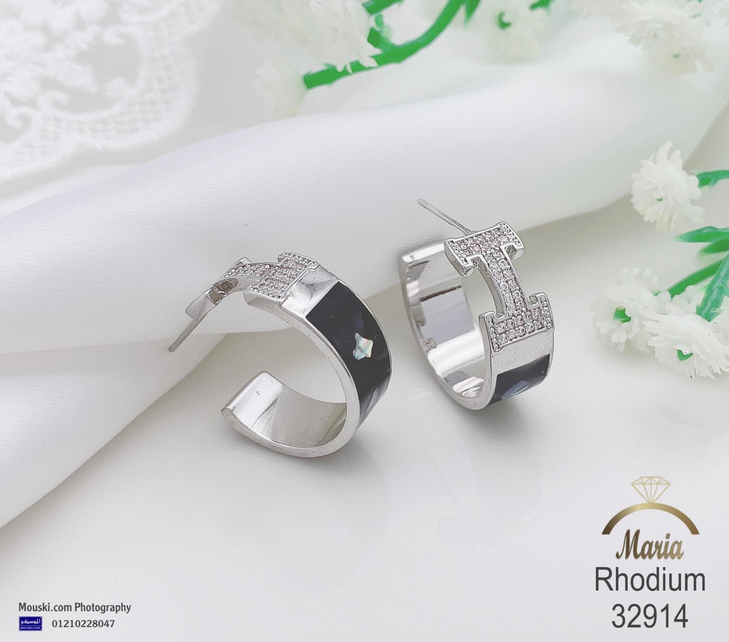 32914 حلق لوكس ماركة ماريا عمود فضه تكه سلفر فصوص مايكرو زيركون
