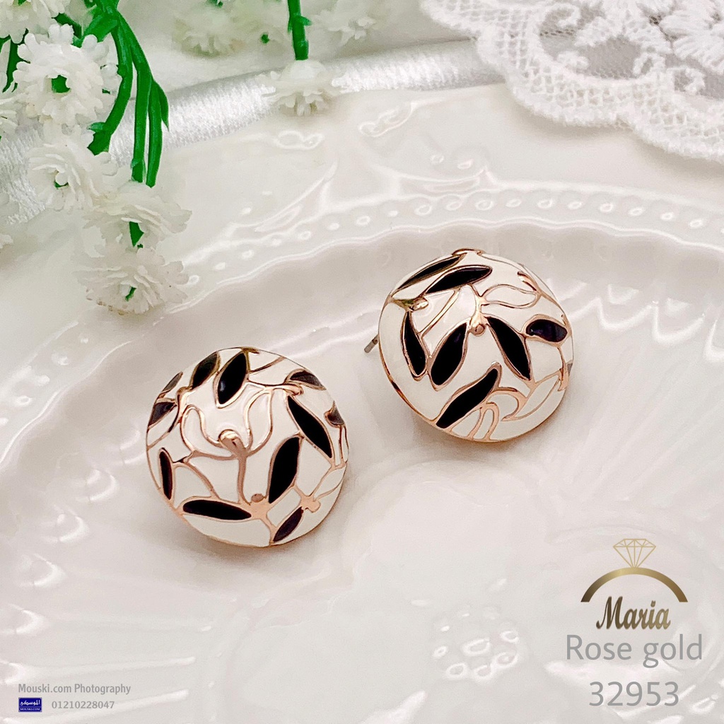 32953 حلق لوكس ماركة ماريا بريمه روز جولد مينا ابيض واسود