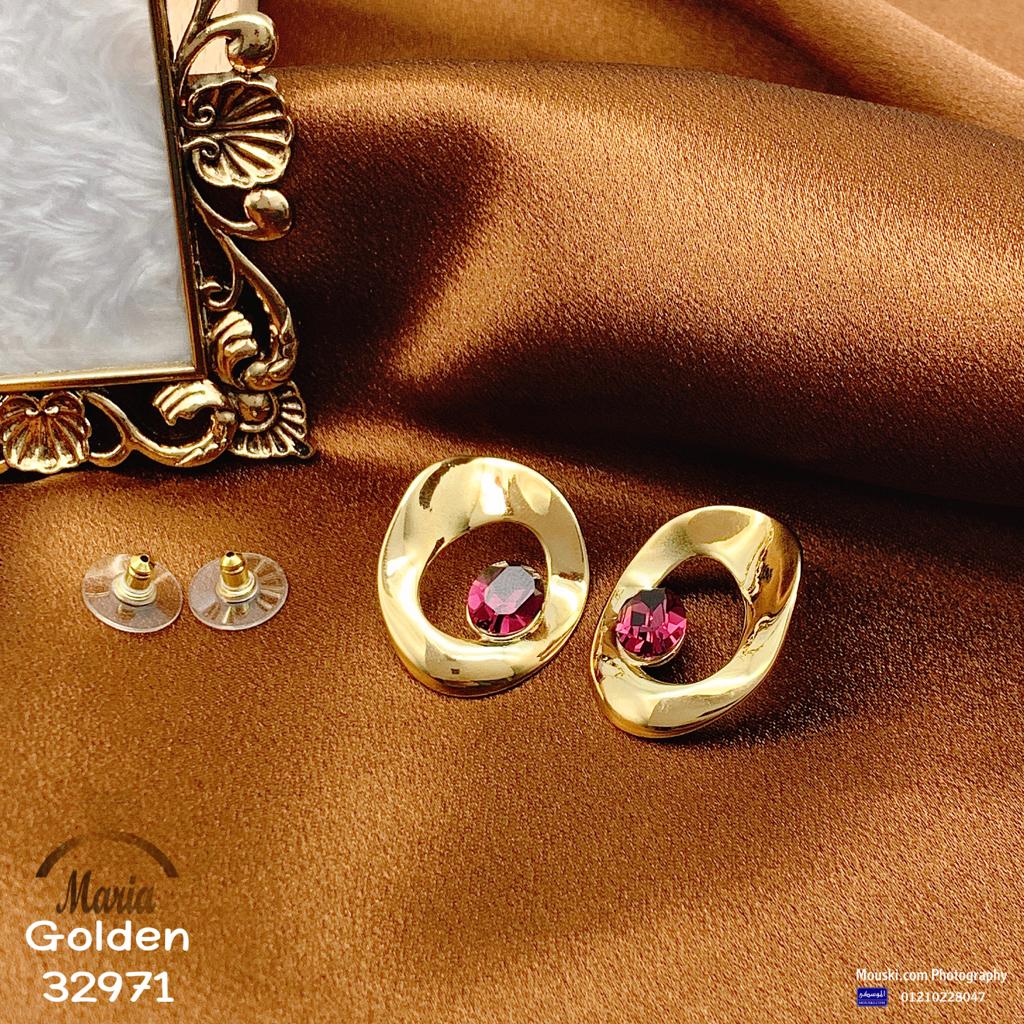 32971 حلق لوكس ماركة ماريا بريمه جولد حلقه فص كريستال بنى