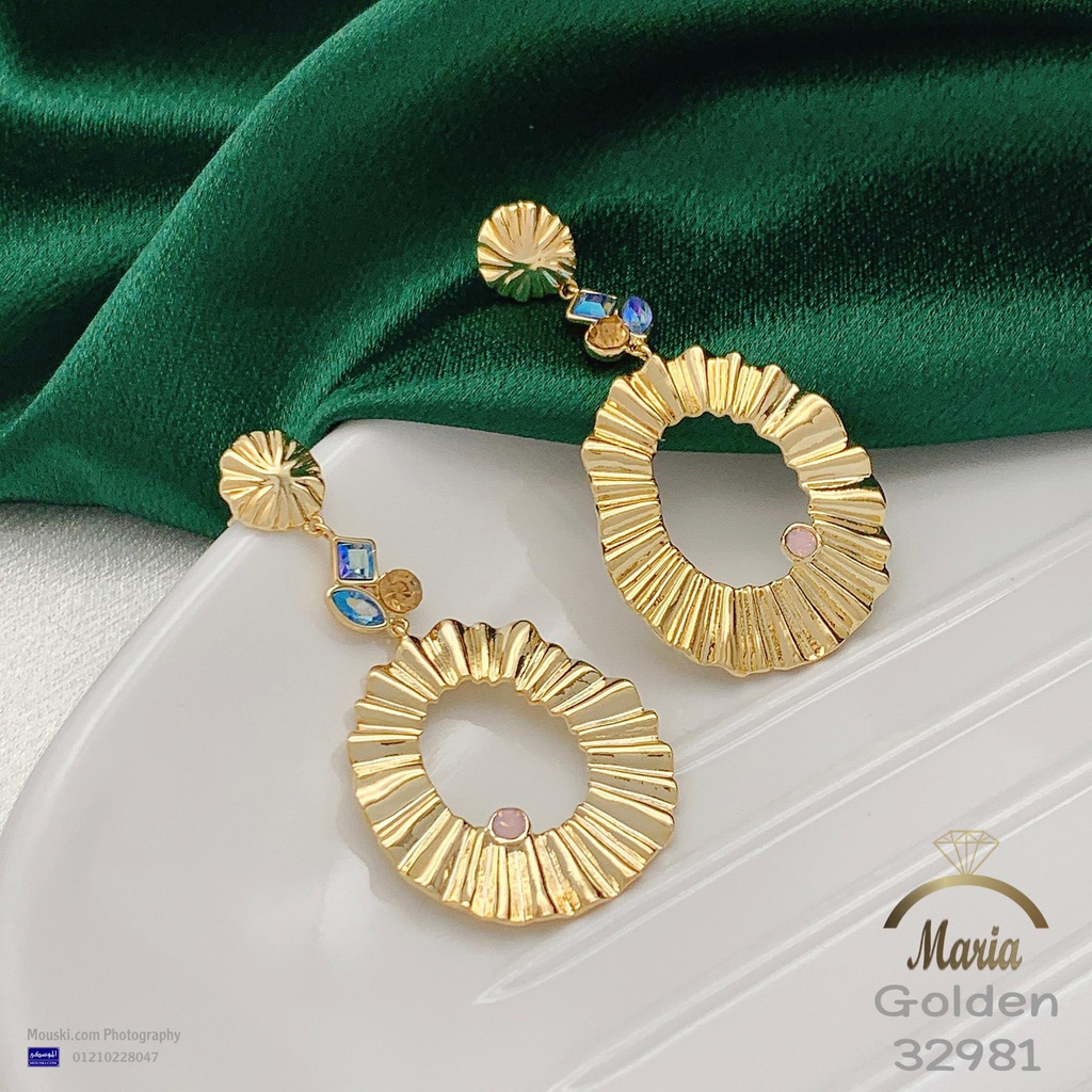 32981 حلق لوكس ماركة ماريا بريمه جولد حلقات منقوش فصوص زيركون