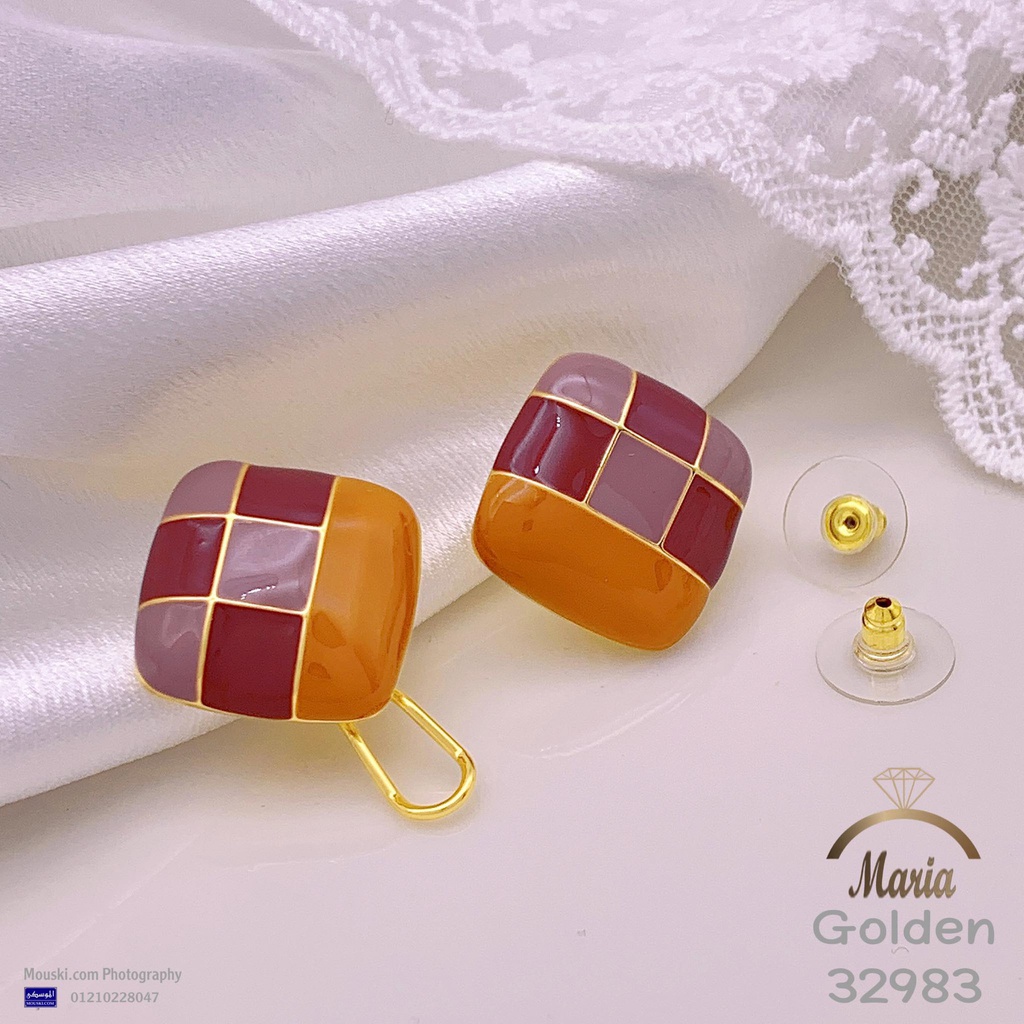 32983 حلق لوكس ماركة ماريا بريمه جولد مربع مينا الوان