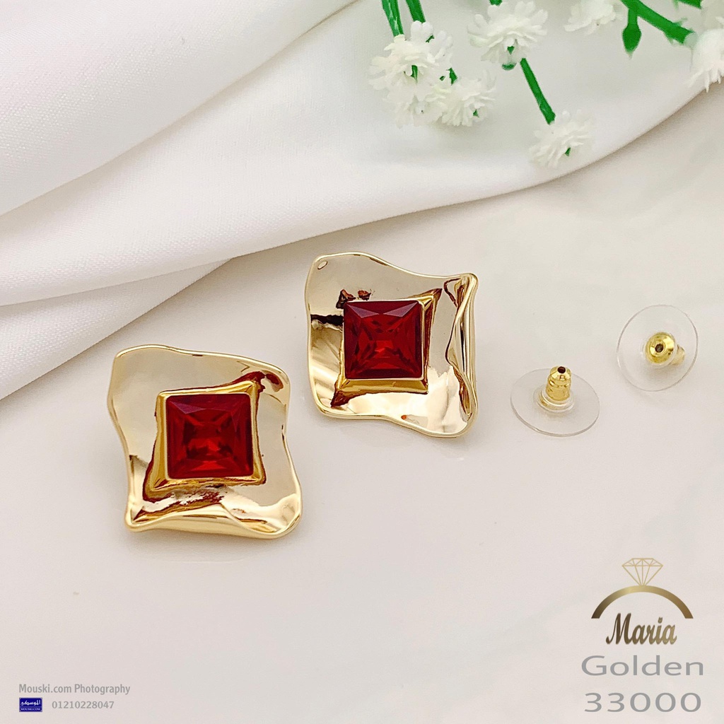 33000 حلق لوكس ماركة ماريا بريمه جولد مرايه فص كريستال احمر
