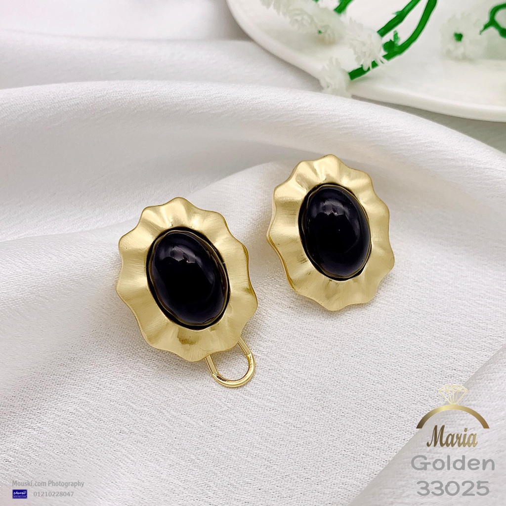 33025 حلق لوكس ماركة ماريا بريمه جولد ورده ماط حجر العقيق