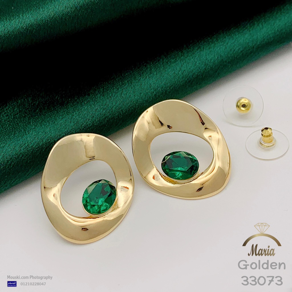 33073 حلق لوكس ماركة ماريا بريمه جولد حلقه فص كريستال اخضر