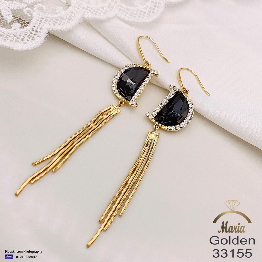 33155 حلق لوكس جولد ماركة ماريا عمود فضه هوك فصوص مايكرو و باجت فصوص مايكرو
