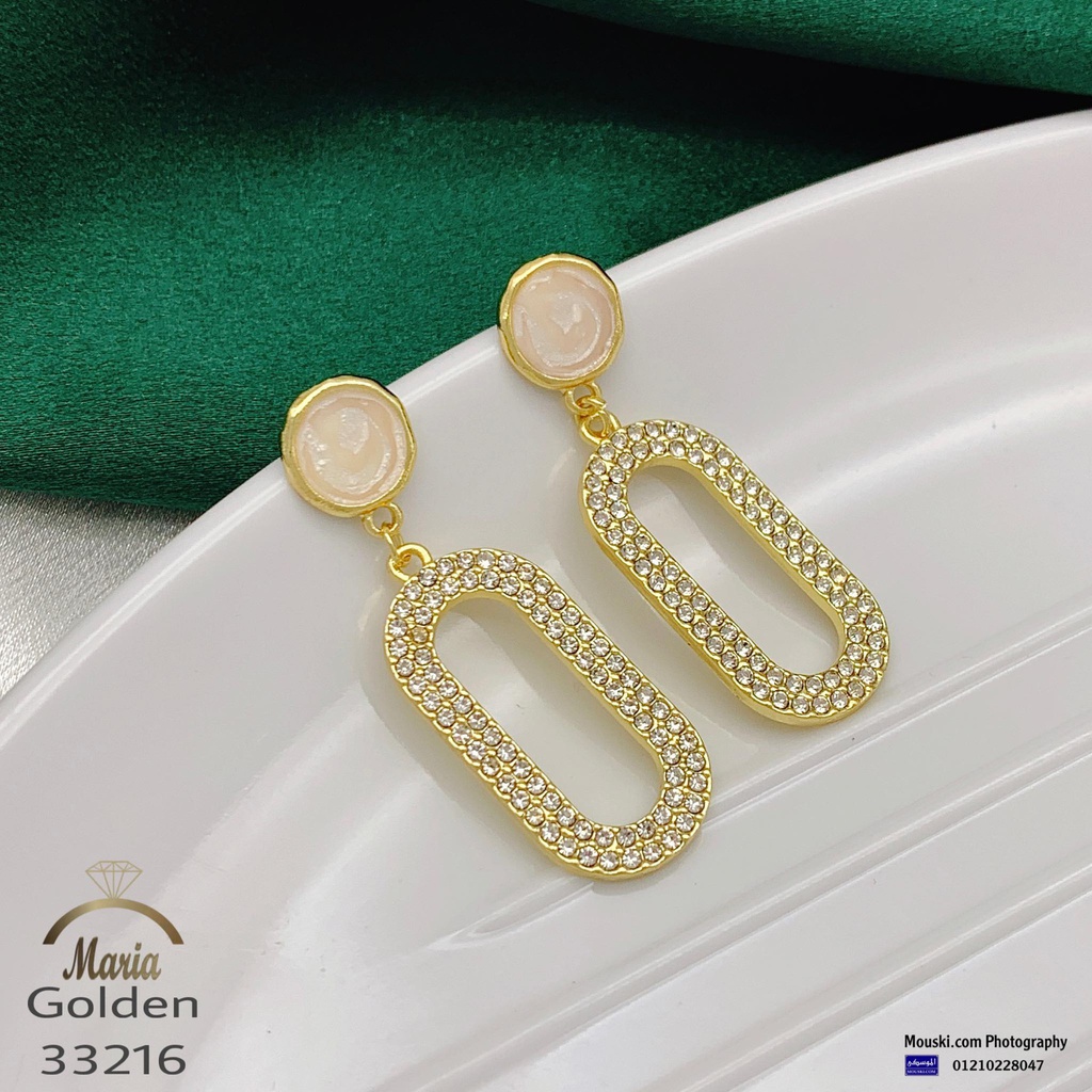 33092 حلق لوكس ماركة ماريا بريمه جولد مربع فصوص مايكرو زيركون