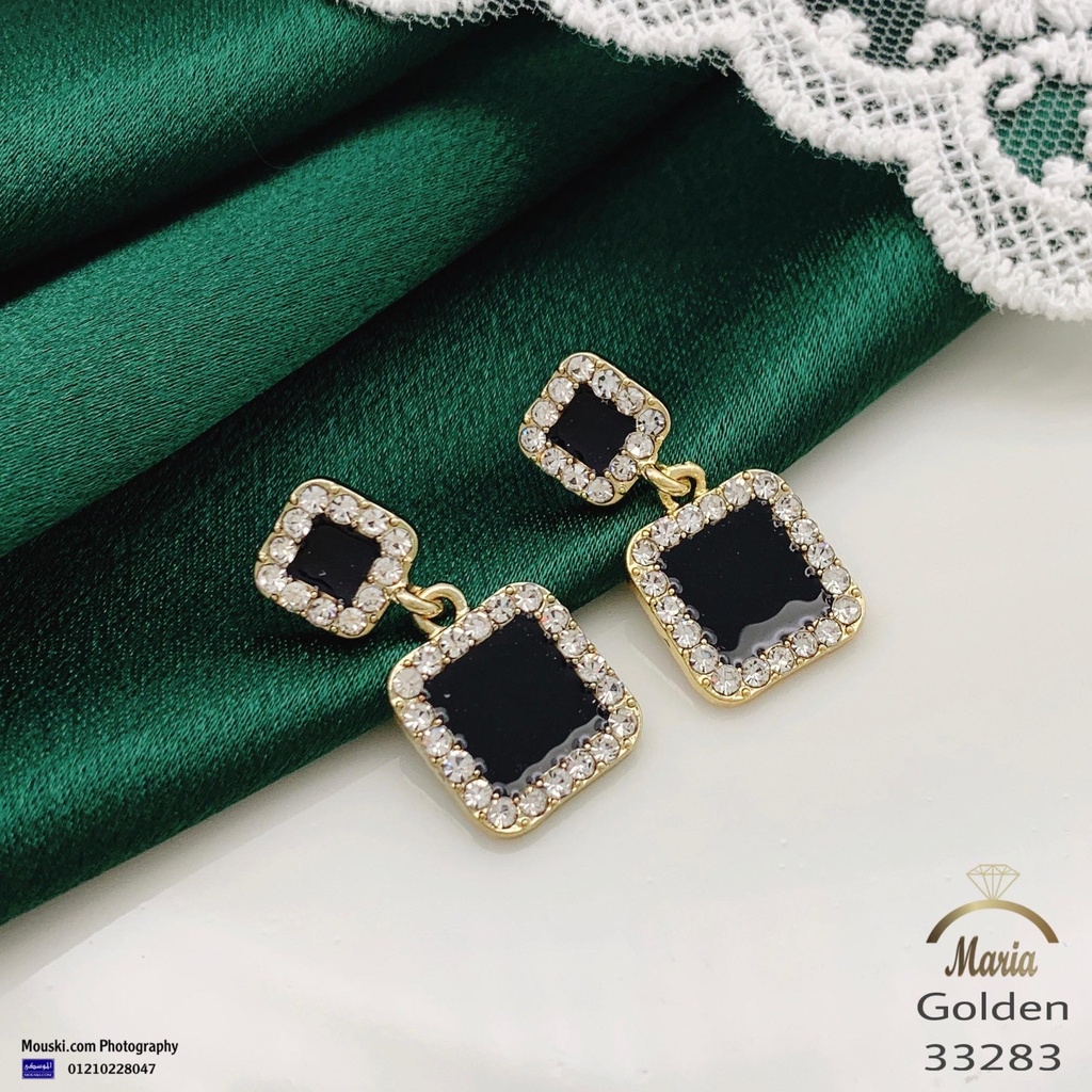 33283 حلق جولد جودة متوسطة بريمه مربع مينا اسود فصوص مايكرو