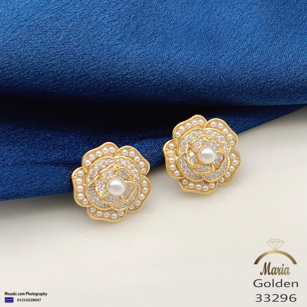33296 حلق جولد ماركة ماريا بريمه ورده فصوص مايكرو زيركون لولى عمود فضة