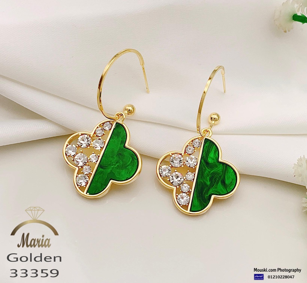 33359 حلق بريمة لوكس جولد فانكليف صدف اخضر فصوص زيركون عمود فضة ماركة ماريا