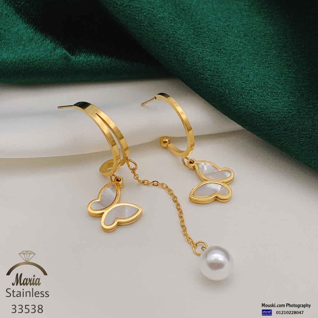 33538  حلق ستانلس جولد بريمة عيار 316 فراشات مينا ابيض