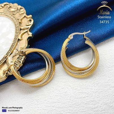 34735   حلق ستانلس جولد و سلفر تكة مكرونة منقوش