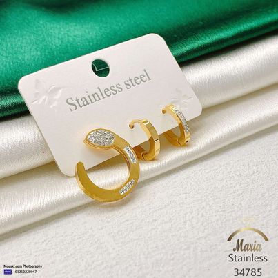 34785 طقم حلق 3 قطع ستنالس جولد بريمة عيار 316 ثعبان فصوص كريستال