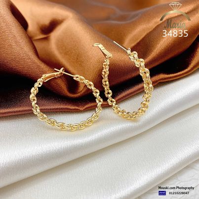 34835  حلق لوكس بريمة ريل جولد عامود فضة عيار 925 مضفر