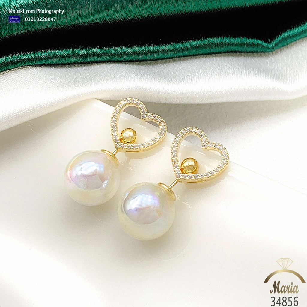 34856 حلق لوكس بريمة ريل جولد عامود فضة عيار 925 لولي و فصوص مايكرو زيركون