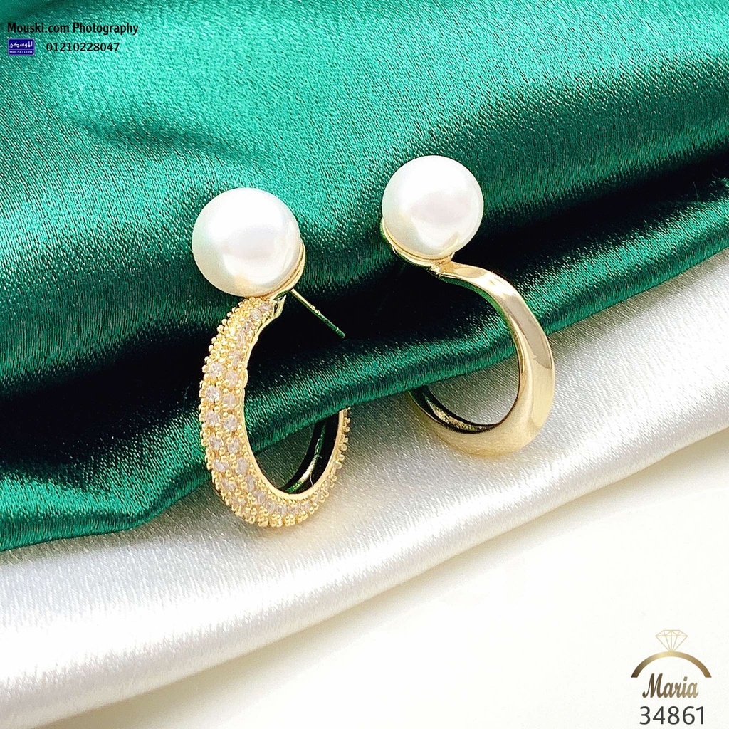 34861 حلق لوكس بريمة ريل جولد عامود فضة عيار 925 لولي و فصوص مايكرو زيركون