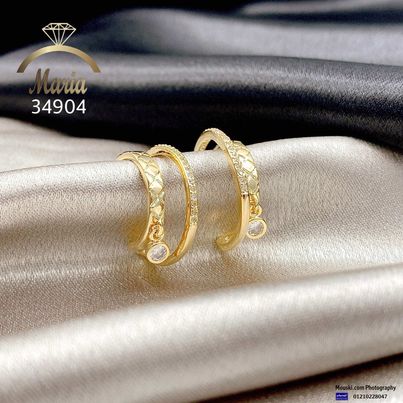 34904 حلق لوكس بريمة ريل جولد عامود فضة عيار 925 فصوص مايكرو زيركون