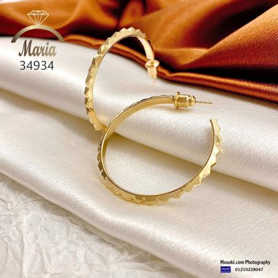 34934 حلق لوكس بريمة ريل جولد عامود فضة عيار 925 مكرونة