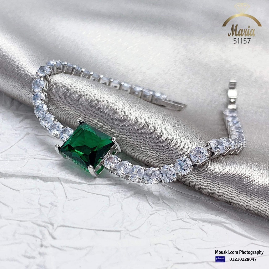 51157 انسيال تنس سلفر فصوص زيركون فص باجت اخضر
